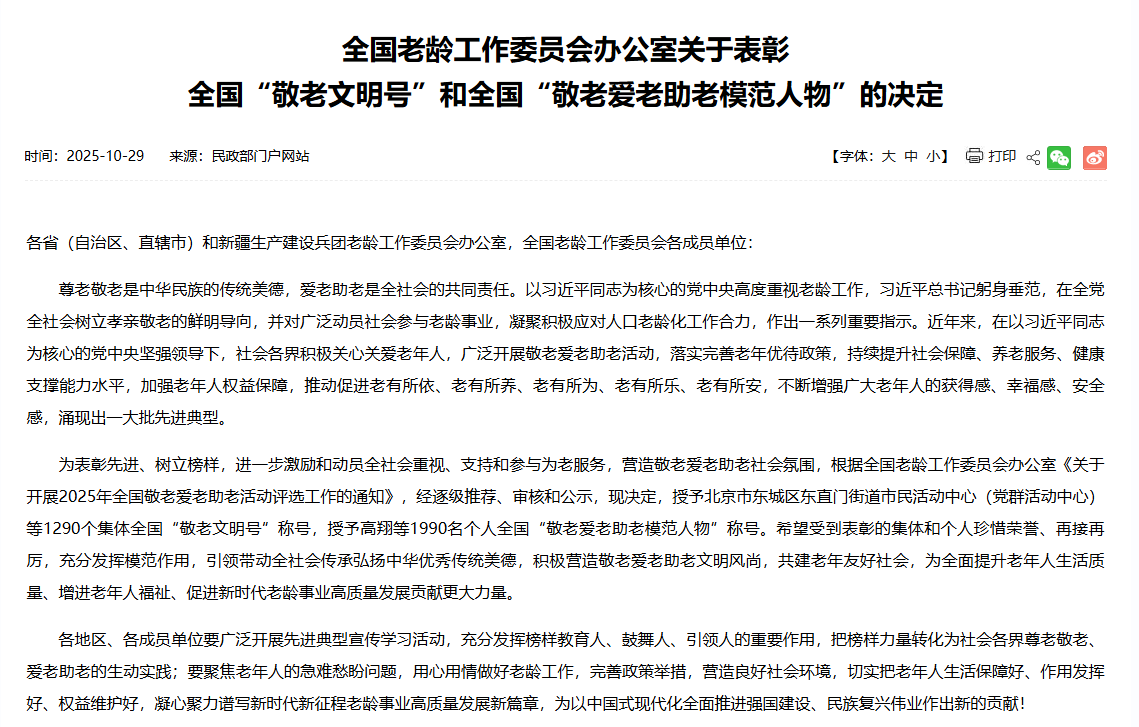 全國“敬老文明號”表彰名單